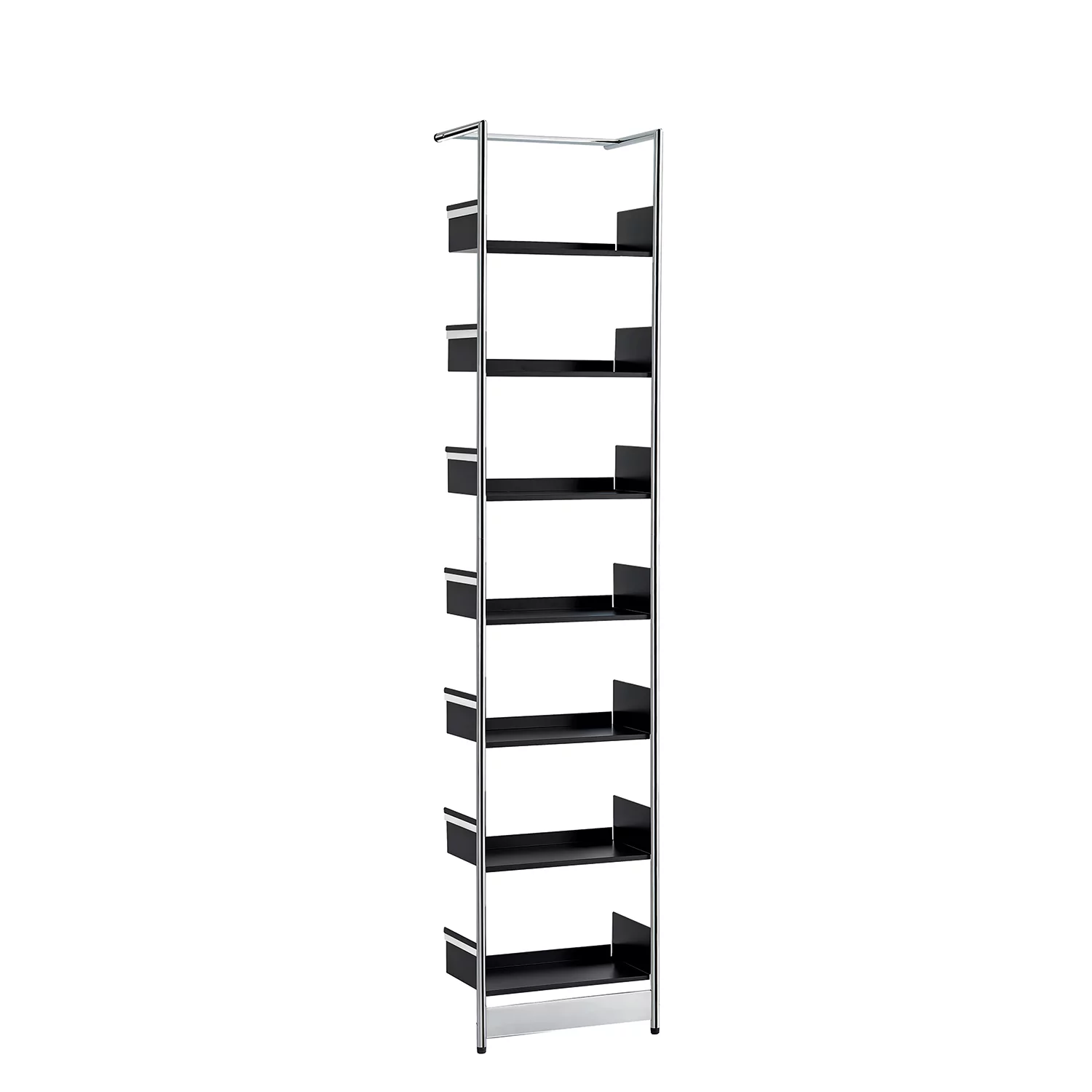 • Anlehnregal Medium Pool 7 Tablare, Rahmen chrom, Tablare schwarz
