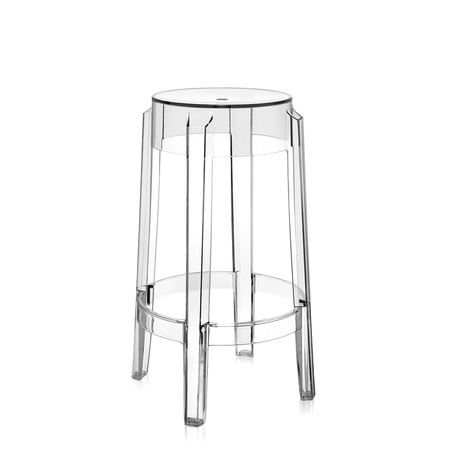 Die ästhetische Wirkung des von Philippe Starck entworfenen Hockers Charles Ghost ist einzigartig. Er besteht aus einem einteiligen transparenten Polykarbonatblock. Setzen Sie Charles Ghost im Innen- oder Außenbereich ein - mit Leichtigkeit integriert er sich in praktisch jegliches Ambiente.