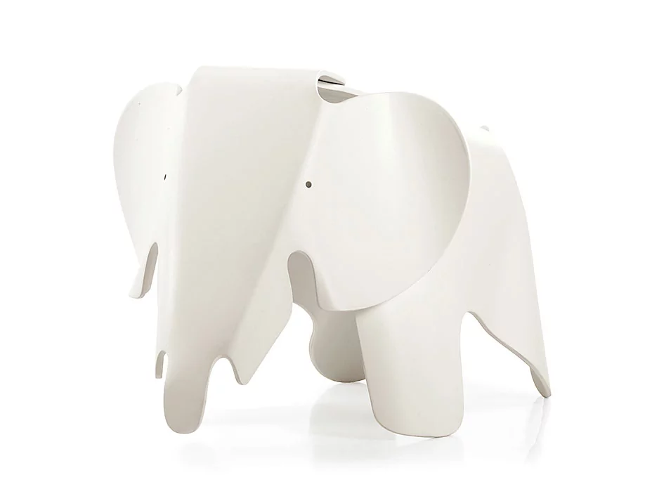 Der Eames Elephant RE von Vitra ist wahrscheinlich das beste Beispiel dafür, dass elegantes Design sich nicht auf ein Nutzmöbel erstrecken muss, sondern auch als Spielobjekt seine Berechtigung hat. Warum sollte nicht auch das Interieur eines Kinderzimmers gewissen ästhetischen und qualitativen Kriterien genügen? Kinder spielen ohne Rücksicht auf die bespielten Objekte – und gerade deshalb ist eine hohe Qualität, wie Sie der Eames Elephant RE bietet, auch im Kinderzimmer durchaus angemessen. Charles und Ray Eames hatten ein ausgeprägtes Faible für Elefanten. Es sind viele Eames-Fotografien enthalten, auf denen die gutmütigen Dickhäuter zu sehen sind. Den Beiden lag es also nahe, für eine Ausstellung im Jahre 1945 den Plywood Elephant zu entwerfen – exakt zwei Exemplare wurden hergestellt. Der Eames Elephant bestand damals aus gebogenem Schichtholz. Weil aber die Verarbeitung dieses Materials zu aufwendig und zu teuer war, ist der Eames Elephant nie in Serie produziert worden.