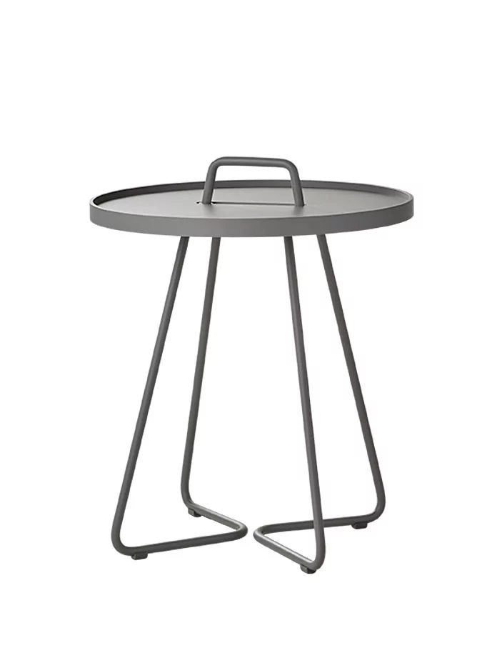 On-the-move ist ein funktionaler und stilvoller Beistelltisch aus der dänischen Kreativschmiede Strand+Hvass. Die Tischplatte ist als Tablett nutzbar und wird auf das Gestell gelegt; der griffige Tragegriff ermöglicht ein leichtes Tragen des Tisches – ideal für den Außenbereich! Eine kleine umlaufende Zarge verhindert, dass während des Transports Gegenstände vom Tisch rutschen.