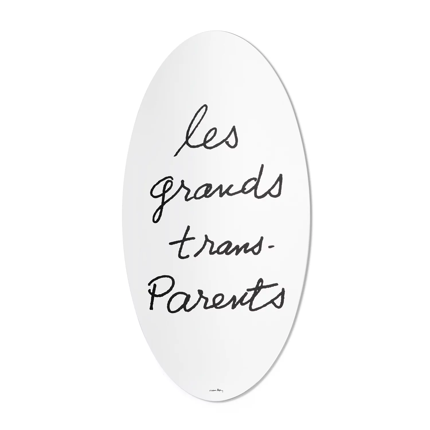 Les Grands Trans-Parents – Man Ray schuf den Spiegel mit dem besonderen Touch. Sein Reflex vermischt sich mit dem originellen Wortspiel auf dem Glas. Zu den radikalsten Exponenten des Dadaismus und Surrealismus zählend, ist der vielseitige Künstler bekannt für seine Experimentierfreude. Der elliptische Spiegel, gehalten von einer Basis aus Polyurethan, leitet sich aus einem seiner berühmten Werke ab. In diesem Fall setzt er den Schriftzug auf eine größere Oberfläche und passt so ein surrealistisches Objekt auf außerordentliche Weise an eine alltägliche Funktion an.