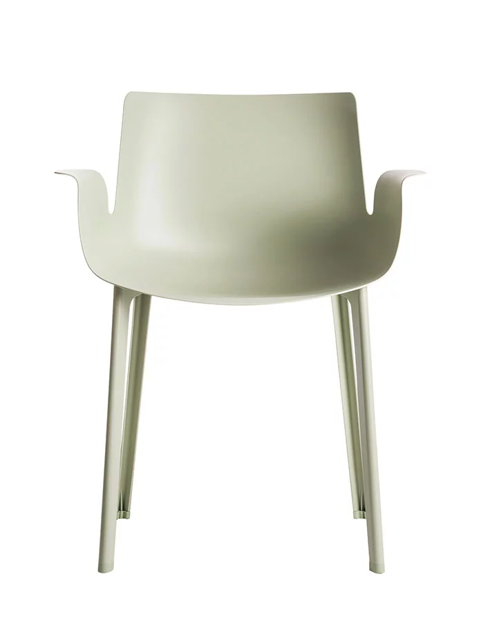 Für die Produktion des Armlehnstuhls Piuma hat Kartell neue Spritzgusstechniken entworfen, um erstmals ein kohlenstoffhaltiges Material für ein Designprodukt spritzen zu können. Dank des außergewöhnlichen Materials und der technischen Fertigungsweise ist der Armlehnstuhl Piuma nicht nur extrem leicht, sondern auch flexibel einsetzbar, langlebig, für den Innen- und Außenbereich geeignet und also ideal für den Einsatz im Garten, auf der Terrasse oder dem Balkon! Dieser Stuhl ist jedoch auch seiner Erscheinungsweise wegen wunderbar, denn die ergonomisch-schwungvolle Sitzfläche geht nahtlos in einladend nach außen weisende Armlehnen – mit einer breiten Fläche, um bequem die Arme ablegen zu können – und eine bequeme, halbhohe Rückenlehne über. Vier stabile Beine tragen den Piuma; zwei davon stehen elegant nach hinten ab. Der Designer Piero Lissoni ist seiner Ausbildung nach ein Architekt, bekannt geworden ist er jedoch als Industrie- und sogar Grafikdesigner – und mit dem Armlehnstuhl Piuma für Kartell dürfte sein Bekanntheitsgrad wieder gewachsen sein!