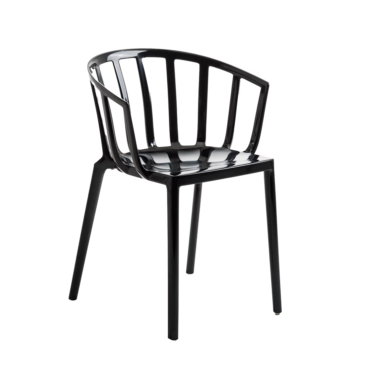 Französischer Designer, italienischer Hersteller – der Stuhl Venice von Philippe Starck für Kartell zeichnet sich durch eine offene Rückenlehne mit modernen Senkrechtverstrebungen und leicht abfallenden Armlehnen aus, dank derer dieser Stuhl – ob im privaten Esszimmer oder öffentlichen Restaurant genutzt – einen annehmlichen Sitzkomfort bietet. Starck hat den Stuhl für die traditionelle „Harry's Bar“ in Venedig entworfen und deshalb den Stuhl nach der Stadt benannt. Der Venice tritt in wetterfestem Polycarbonat auf, so dass auch eine Nutzung im Außenbereich gänzlich unproblematisch ist.
