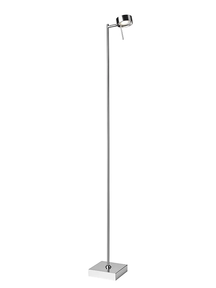 Gradlinige Form, schmale Silhouette – die Stehleuchte Bling besteht aus einer dünnen Stange, an deren oberen Ende sich ein Dimmer befindet und der Leuchtenkopf abzweigt. Dank eines Kugellagers im Leuchtenfuß lässt sich die Bling in alle Richtungen ausrichten. Der Kopf lässt sich neigen, kraftvolle LEDs tun ihr Übriges. Die Leuchte stammt von Sompex, einem namhaften Hersteller, der schon seit vielen Jahrzehnten gleichermaßen schöne wie auch qualitätsvolle Leuchten produziert.