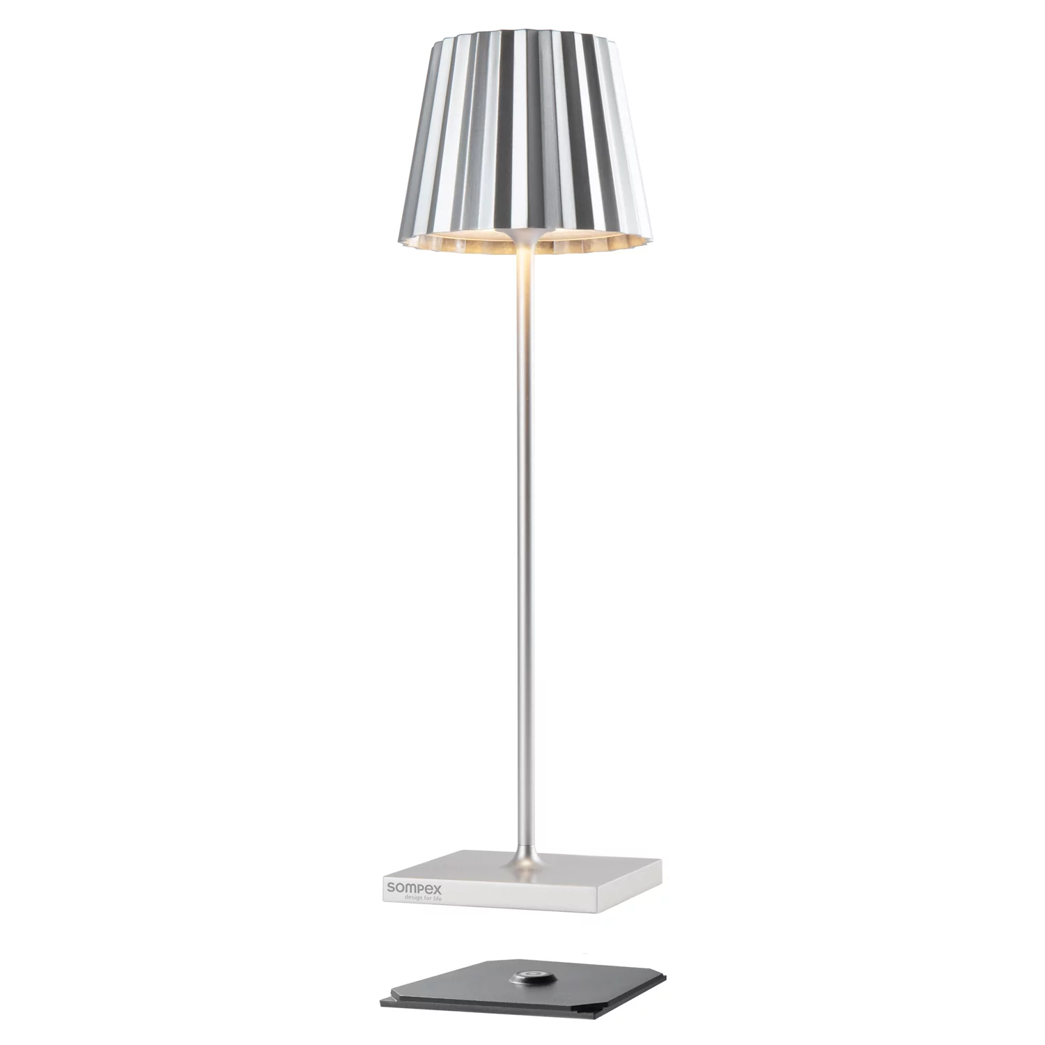Lieferung inkl. fest verbauter LED-Einheit (nicht austauschbar) und Ladestation;